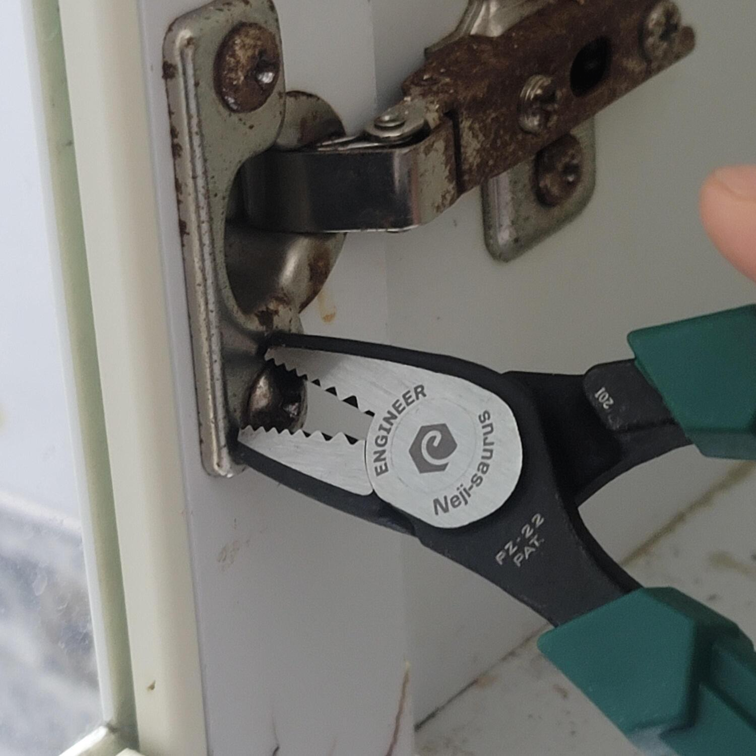 나사가 보통 원형이잖아요? 이 네지사우르스는 일반 펜치와 다르게 잡는 부위가 원형으로 되어있어서 나사를 꽉 잡아줘요. 그 상태에서 돌리면 진짜 나사 빠집니다.