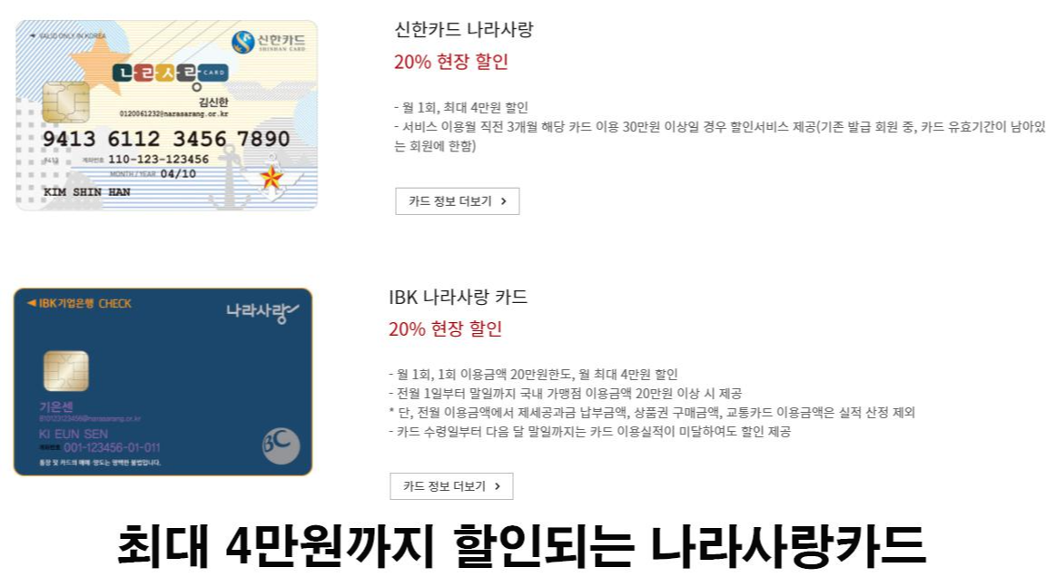 저는 국민 나라사랑카드를 갖고 있는데, 국민은 안되더라구??? 진짜 IBK보다 국민을 더 많이 쓰는데 아쉬워요.
