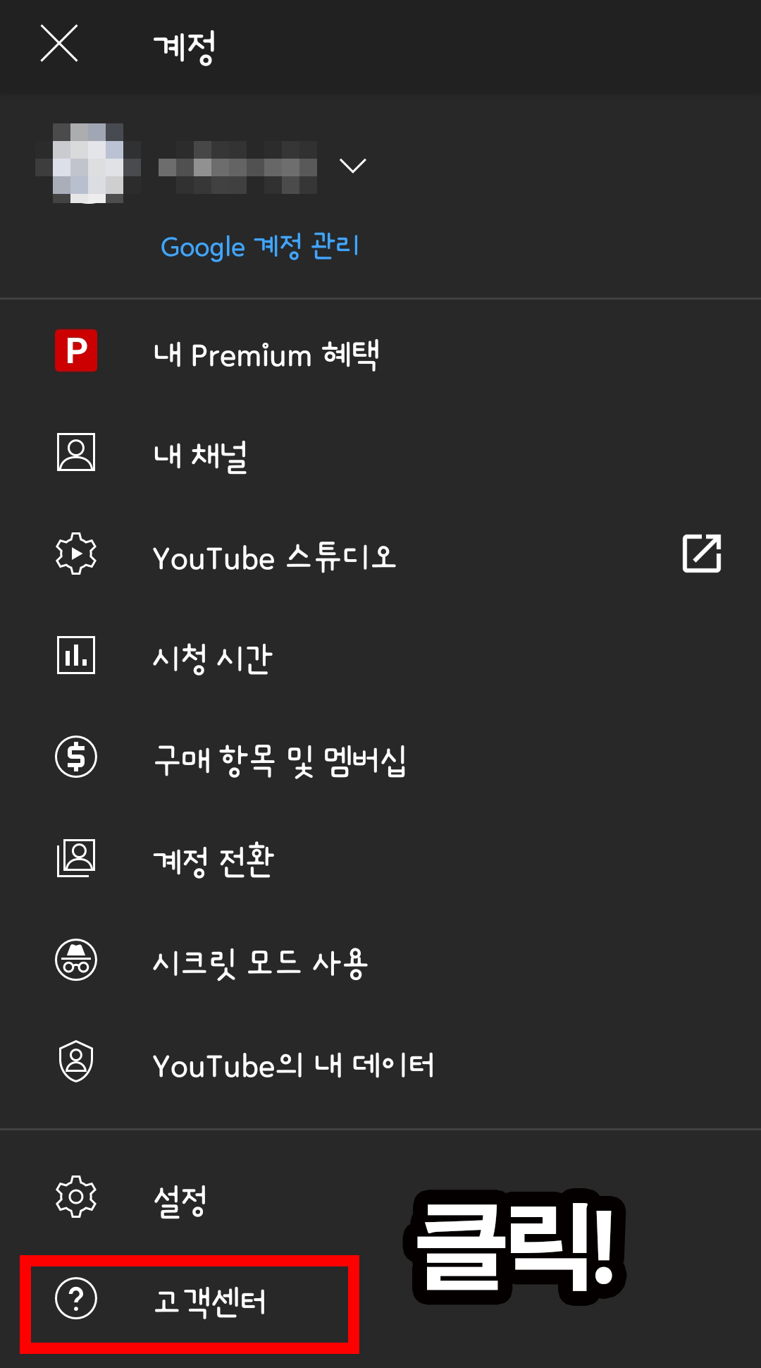 유튜브 앱 들어가셔서 오른쪽 위를 보세요. 자기 계정버튼이 있습니다. 클릭해주시면 됩니다.
