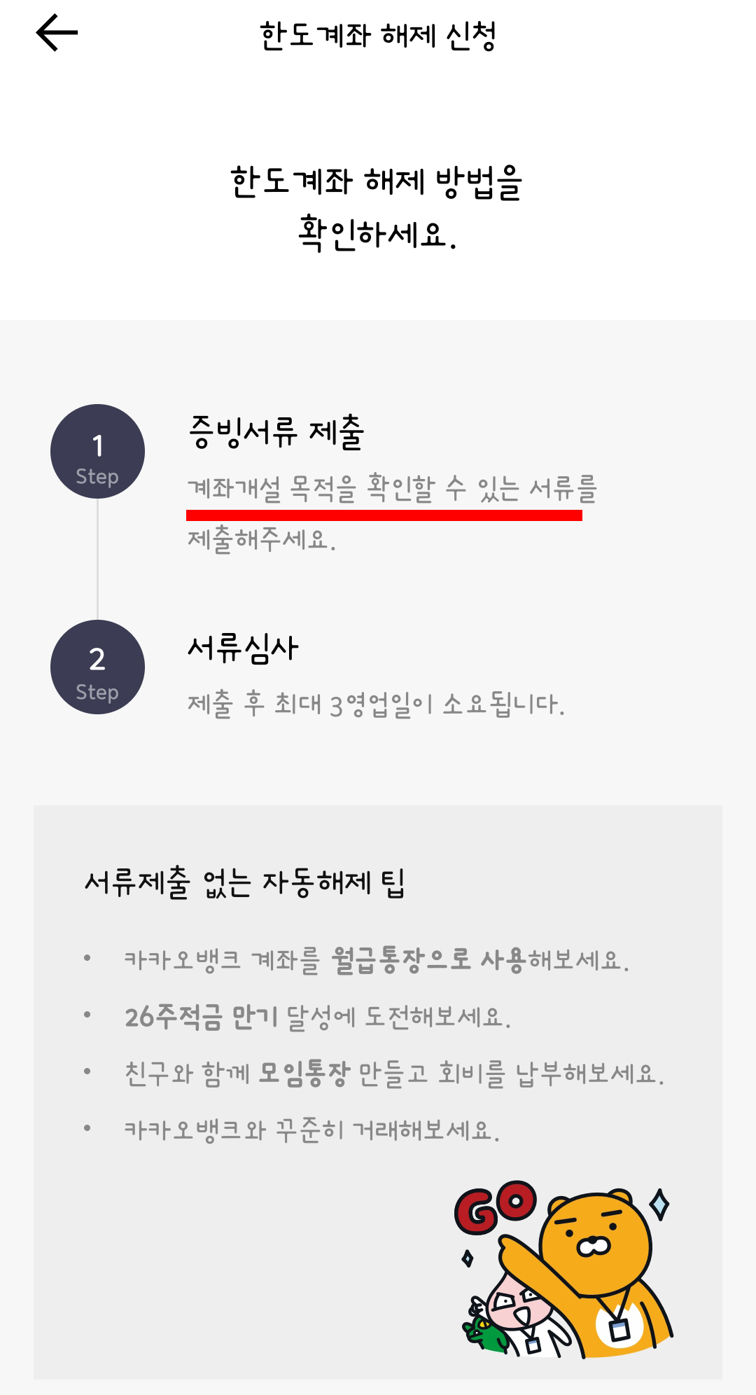 한도 해제를 신청하려면 증빙서류가 필요한데요. 증빙서류를 내지 않으려면 3가지 방법으로 자동 해제 가능해요.