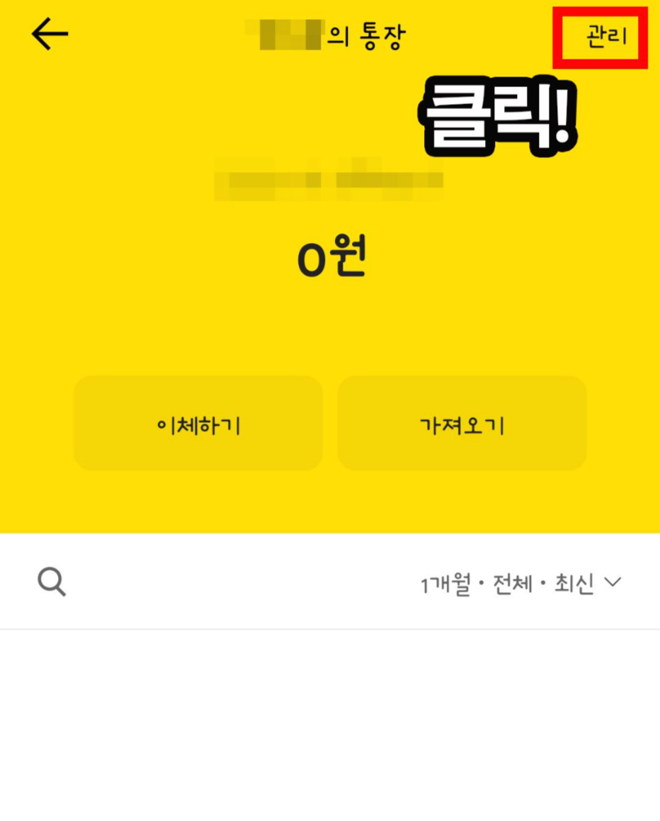 저는 카카오뱅크를 개설했으니 카뱅기준으로 말할게요. 본인 한도계좌를 들어가셔서 오른쪽 위를 보시면 관리 항목이 있습니다. 클릭해주세요.