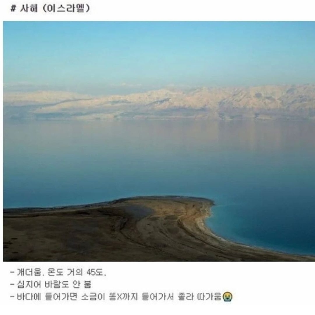 - 바다에 들어가보면 소금이 너무 많아 똥꼬까지 들어간다고 한다