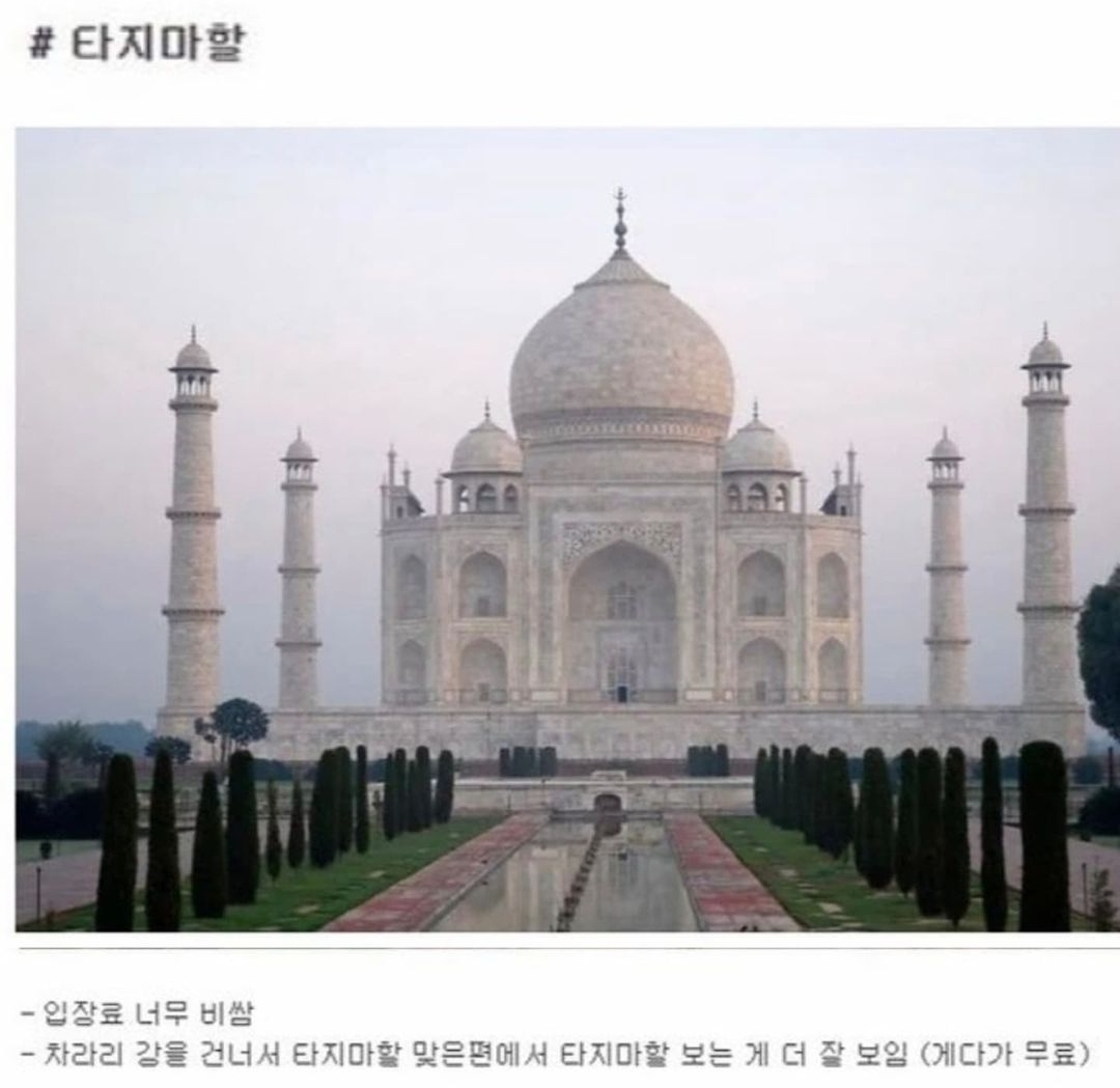 - 라고 생각했는데, 강 건너서 타지마할 맞은편에서 타지마할 보는게 더 잘보인다고 한다(꿀팁)