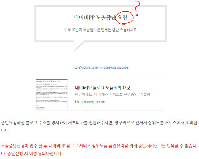 그리고 하는 말. 불만있으면 네이버pp 노출중단 요청을 하란다. 요청??? 아니 너가 맘대로 가져가놓고 내쪽에서 요청을 해야돼?? 일단 단어선택 개빡침. 내가 신청안했는데 가져가놓고선 지우고 싶으면 요청하라고???????ㅋㅋㅋ무슨 사고방식일까?