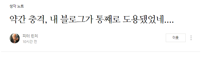 처음 알게된 것은 내가 구독하는 블로그의 글 때문. 자기 블로그가 통째로 도용당했대. 나는 또 어떤 기계가 수집했구나 생각했다. 근데 아니야.