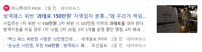 만약 방역패스 위반이 걸릴 경우 사업주와 어긴 사람에게 과태료가 부과되구요. 사업주에게는 150만원의 과태료가 부과된다고 합니다. 4차까지 걸리면 폐쇄조치...