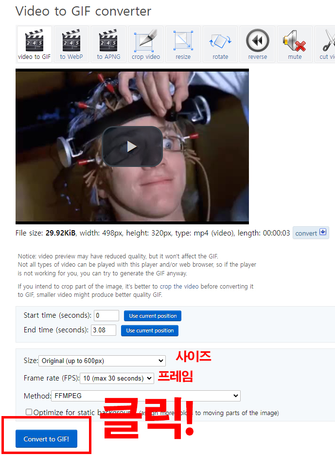 하지만 우리가 필요한 것은 GIF 파일이지 MP4 동영상이 아니잖아요. 다른 사이트 들어가서 MP4를 GIF로 바꿔줄거예요.