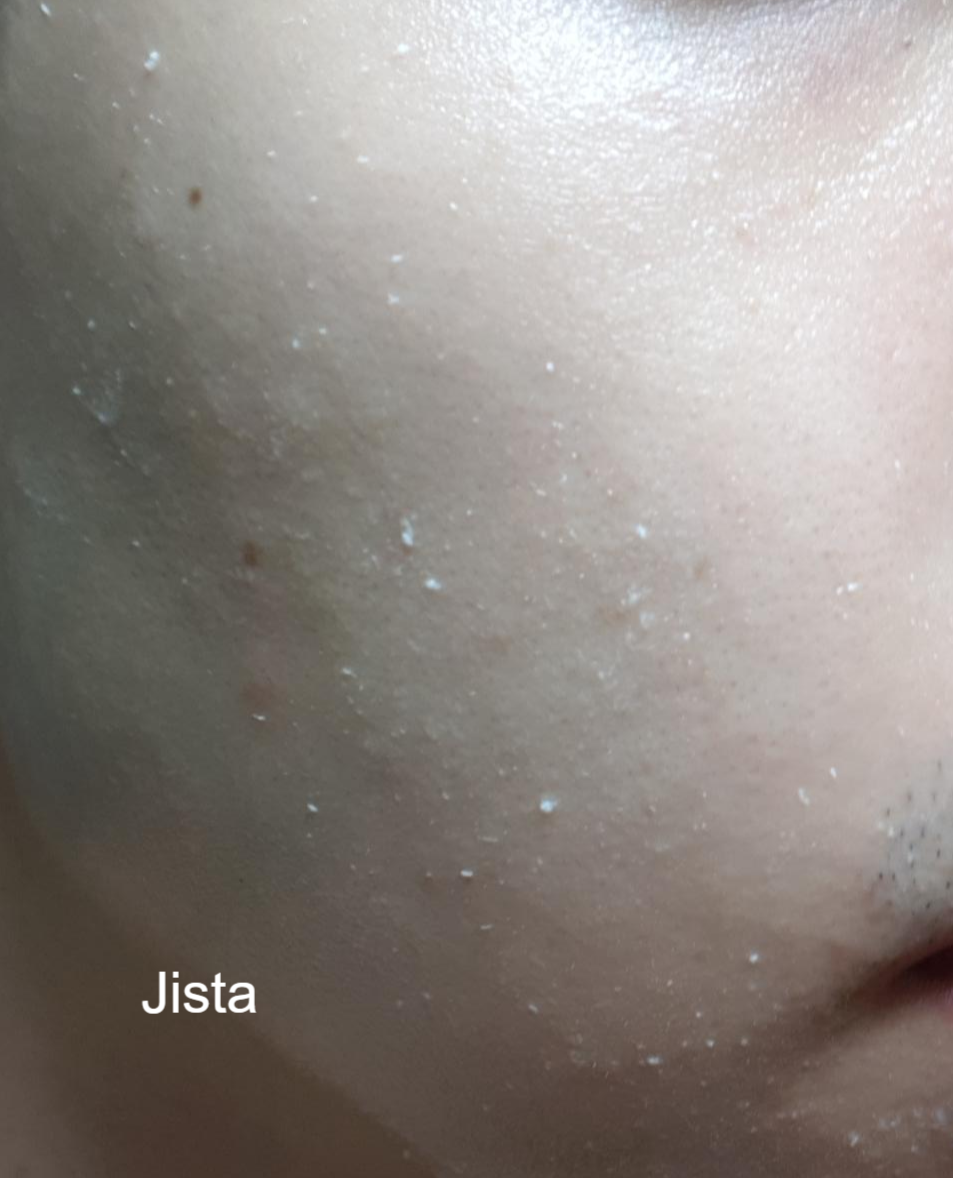 얼굴 가득한 지우개 고마쥬들이 보이나요?? 이 지우개 고마쥬들이 표피와 함께 문질러져서 각질탈락을 도와줘요!