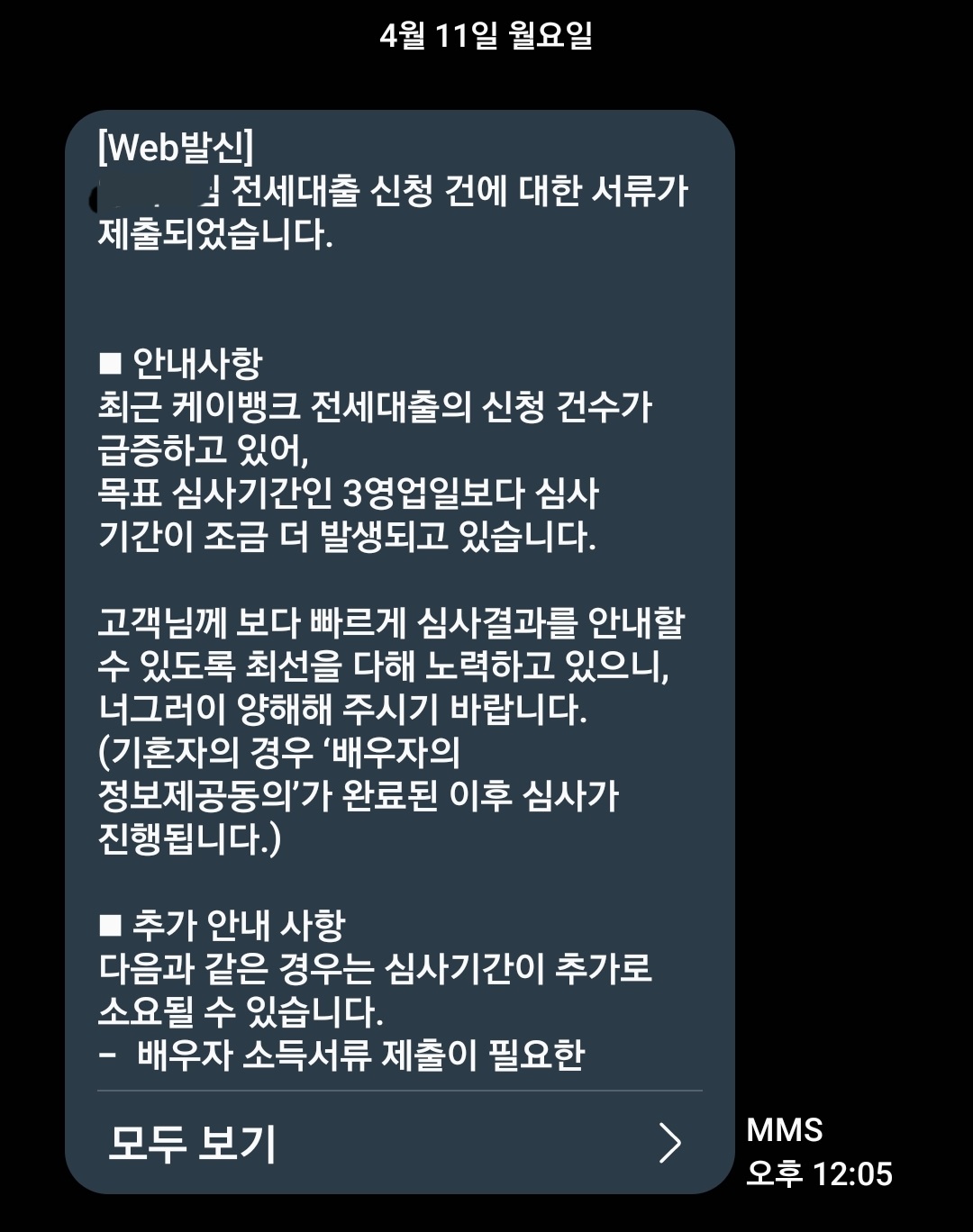 그리고 4월 11일 월요일 오후 12시 5분에 서류를 다 제출함. 신청 건수 급증이라고 3영업일보다 더 걸릴 수 있댄다. 후...빨리되야할텐데 생각했더니 그 날 오후 1시 54분에 심사결과 떴다고 옴.