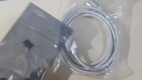 충전기 어댑터에 연결할 케이블 USB 부분과 스마트폰에 연결할 커넥터 부분 사진입니다. 보시면 기스하나 없이 정말튼튼해보여요. 기스났으면 바로 환불각이었는데 ㅎㅎ