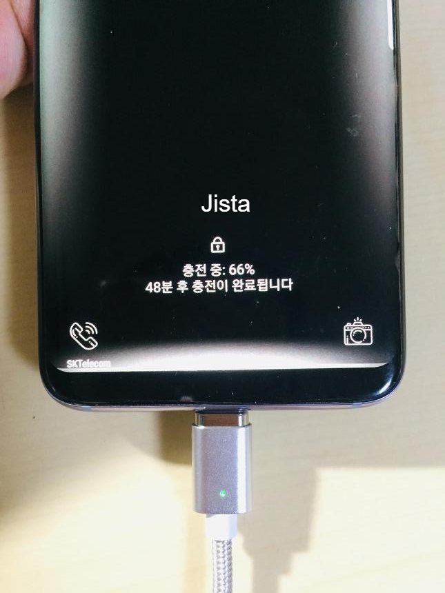 위 사진은 스타쉴드 마그네틱 고속충전 케이블 USB C타입인데요. 삼성 정품 케이블과 마찬가지로 66% 충전 되었을 때 완충까지 48분남습니다.