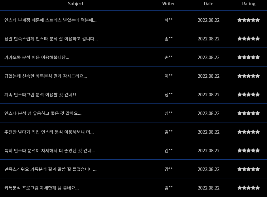 혹시나 싶어 3500개의 페이스앱 사이트 리뷰들 중 무작위로 여러개를 클릭해본 결과 이상하다.