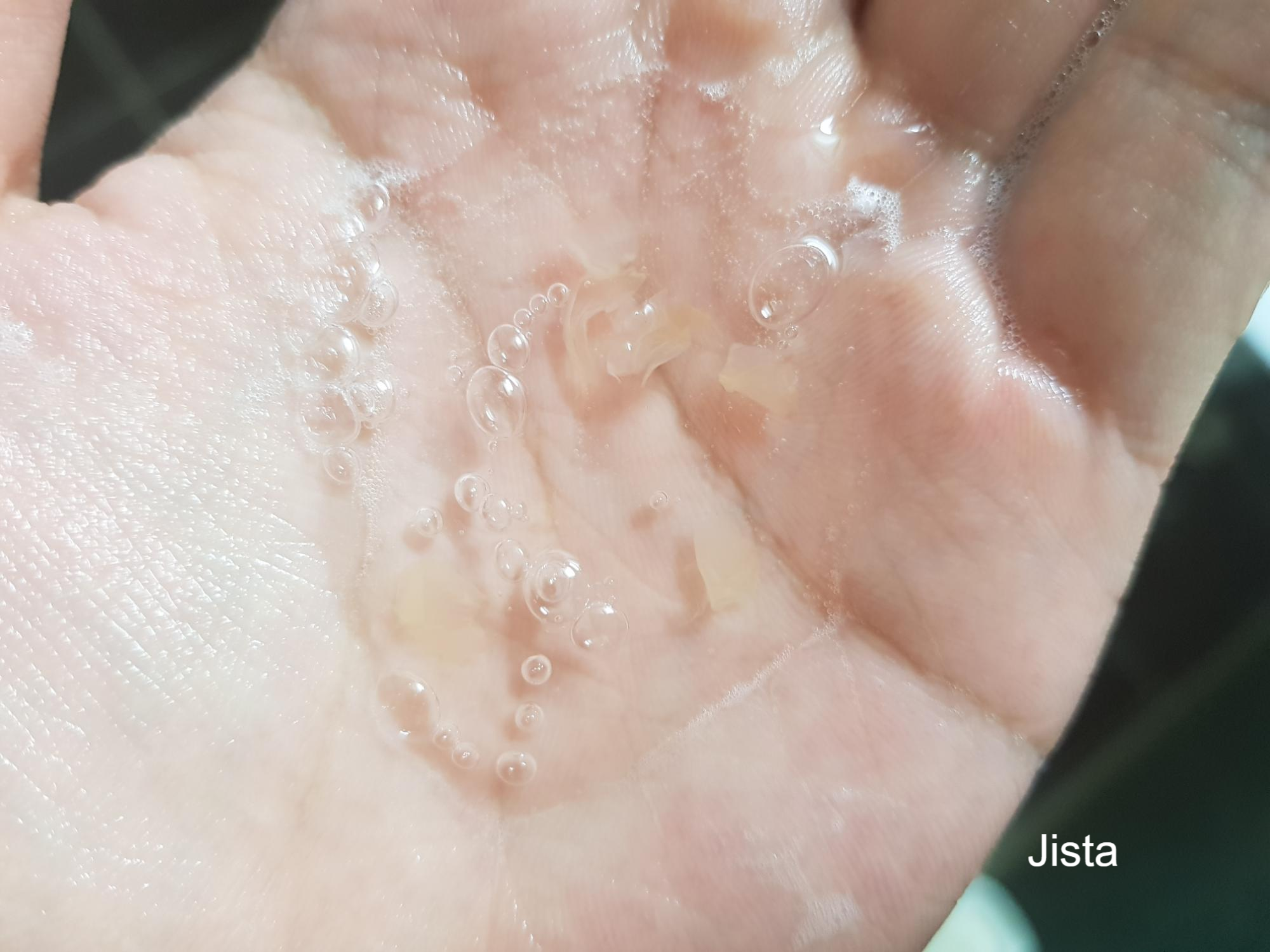 이제 거품이 얼마나 나는지를 테스트해야죠! 직접 손에 발라보고, 물을 묻혀보고, 퍼프타올을 사용해봤습니다.