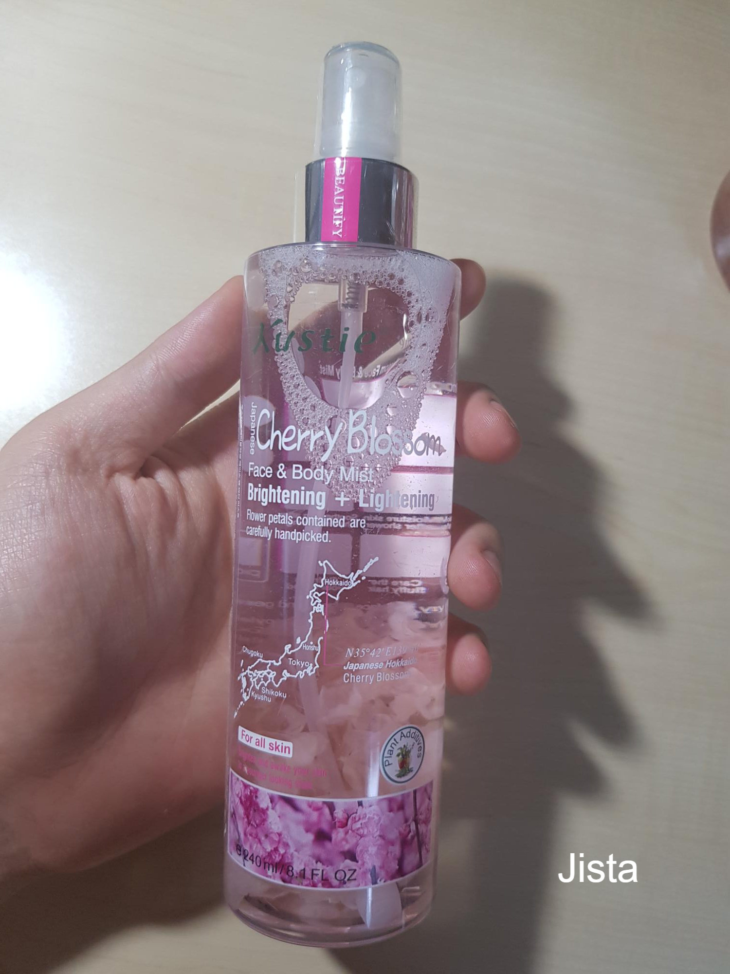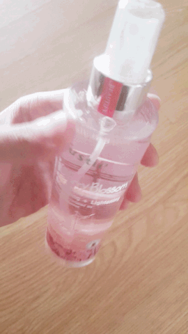 그 다음 구성품으로는 체리블라썸 미스트입니다. 얼굴 또는 몸에 뿌려주는 미스트로 바디워시보다 투명하게 생겼어요.