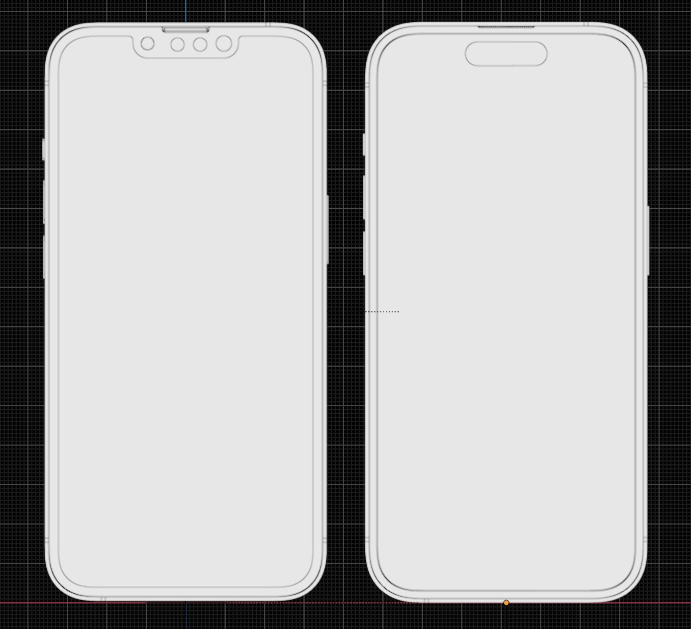 아무래도 펀치홀을 활용해야하기 때문에 상단에도 여유 공간이 필요하다. 왜냐면 디자인적으로 위 아래, 좌우가 같은 넓이여야 이쁘기 때문이다. 그래서 펀치홀은 이전 아이폰 13의 노치부분보다 좀 더 아래로 내려왔음